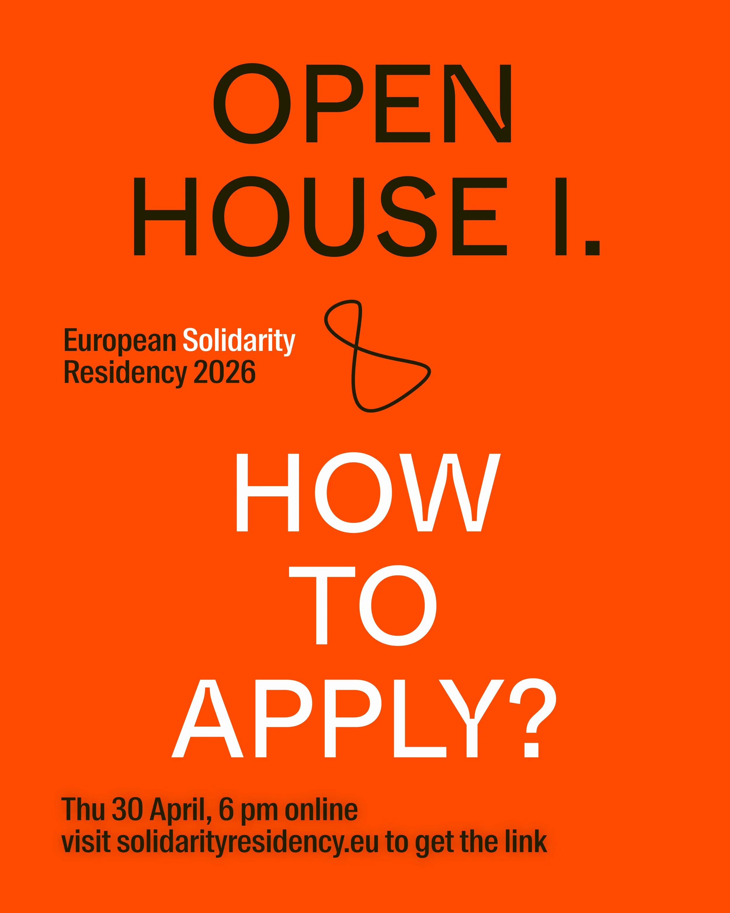 ESR 2026 Open House I. — How to Apply (Technical Session)", an online session part of the European Solidarity Residency (ESR). The event will give prospective applicants a clear, step-by-step walkthrough of the application process for the fully funded 30-day residencies in Budapest, Dubrovnik, and Lidice.